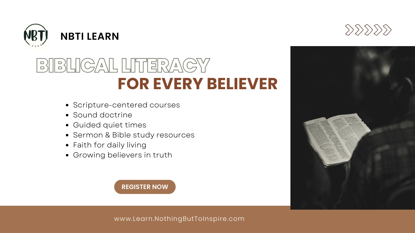 Learn.NothingButToInspire.com is the learning platform of NBTI, built to strengthen biblical literacy and deepen faith through Scripture-centred, doctrinally sound teaching. Here, believers are equipped not just to read the Bible, but to understand it, live it, and defend it faithfully in every generation.